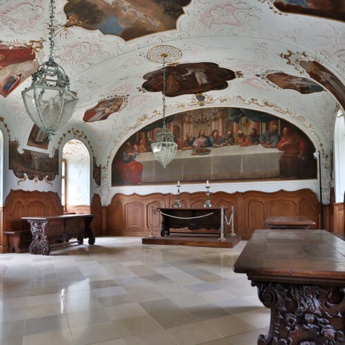 Az eredetihez igazodó történeti bútorok kaptak helyet a rendezvényekre használt terekben is, így a Refektóriumban, a Díszteremben, a Káptalanteremben, a Könyvtárszobában és a Kápolnában is.